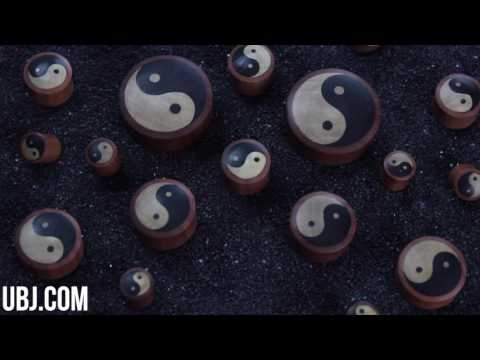 Sold in pairs (2 pieces) Saba wood plugs - Arang & crocodile wood inlay Double flare Yin Yang design Pick from 00G up to 1 & 1/4" inch 11mm-12mm wearable area