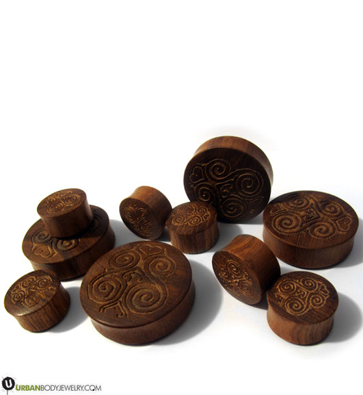 Natural handcrafted saba wooden plugs. These plugs feature an engraved heart and arrow design. Sold in pairs, each plug has a wearable area of either 12mm or 14mm depending on the size. These double flared plugs are available in sizes ranging from 5/8" (16mm) to 2" (51mm).