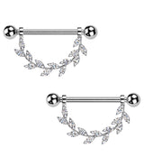 Wreath Clear CZ Internally Threaded Titanium Nipple Barbells